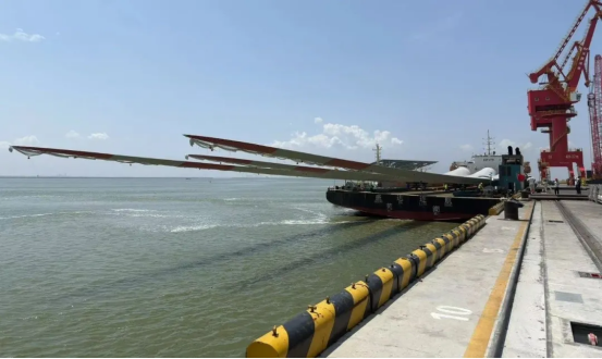 单支长度达153米的“叶片长龙”,长度堪比4架C919客机首尾相接,运输难度极高。从工厂到港口的运输路线如“障碍赛”,高压线、桥梁、急弯层层阻隔,发运团队提前半年实地勘测,多次复勘定制“分段式护送”方案。
